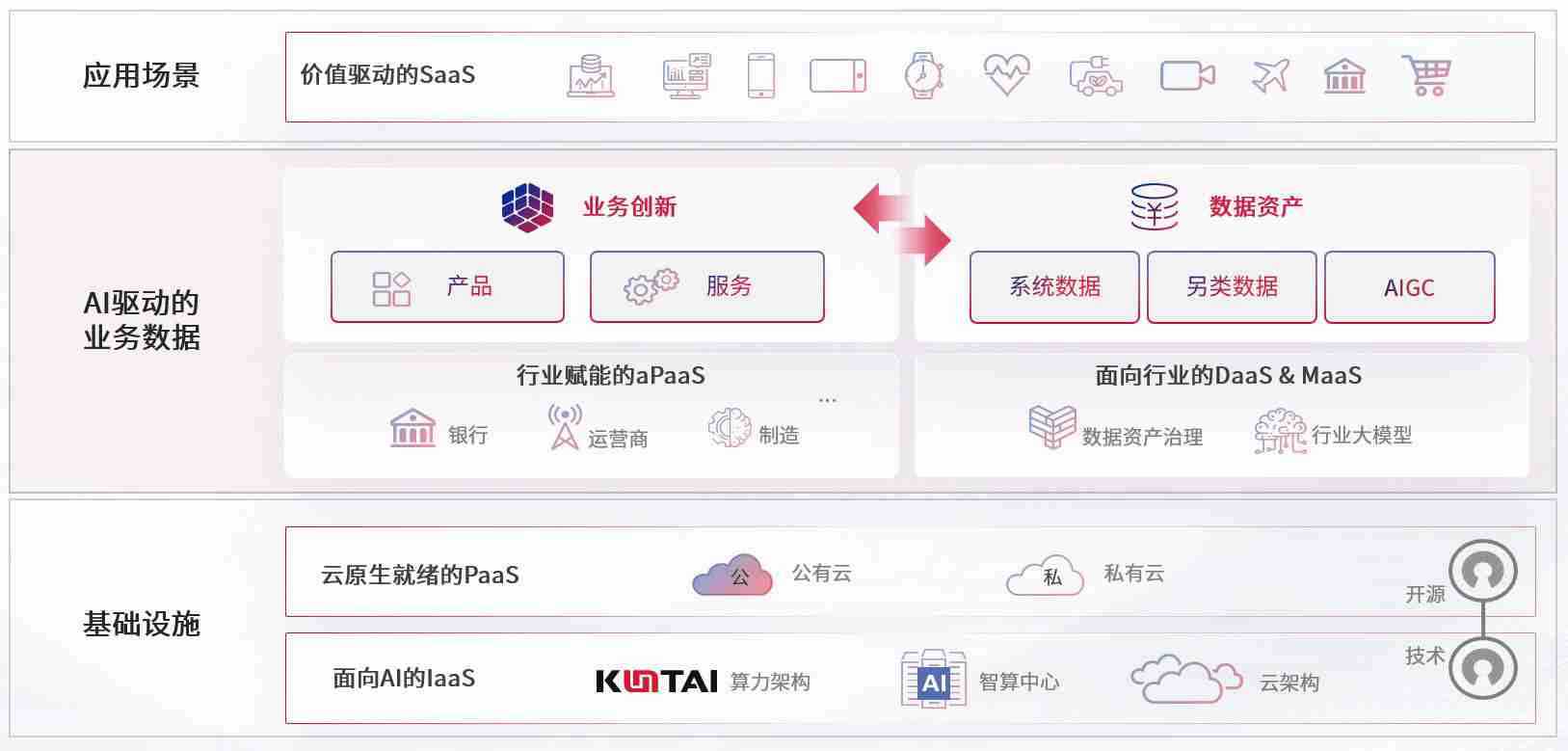 数字时代,,,围绕企业数字化转型的关键要素,,Z6尊龙时凯数码开创性的提出数云融合战略和技术体系框架,,,,着力在云原生、、、、数字原生、、、、AI原生和信创产业上架构产品和服务能力,,,为处在不同数字化转型阶段的快消零售、、、、汽车、、、金融、、医疗、、、、政企、、、、教育、、、运营商等行业客户提供泛在的敏捷IT能力和融合的数据驱动能力,,构建跨界融合创新的数字业务场景和新业务模式,,,助力企业级客户建立面向未来的核心能力和竞争优势,,,全面推动社会的数字化、、、智能化转型升级。。